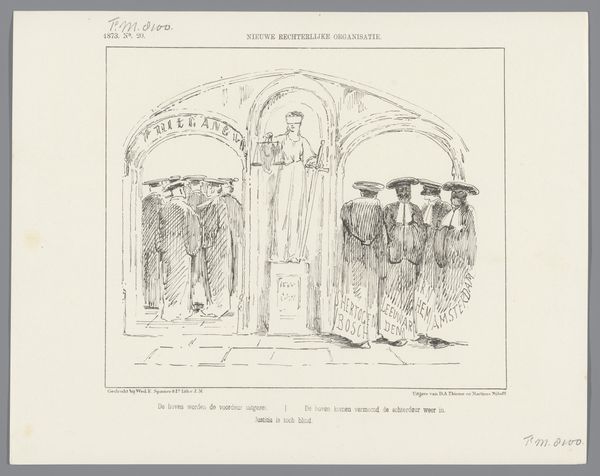 Johan Michaël Schmidt Crans created this print in 1874, a period of intense debate surrounding the Netherlands' colonial policies in Aceh, now part of Indonesia. The cartoon depicts Dutch politicians as conspirators, their unity and secrecy highlighted by their matching outfits and hats. The artist uses satire to critique the political climate of the time. It hints at the behind-the-scenes machinations related to the Aceh War. The text accompanying the image, which translates to “When one conspires, and is without fear, one can call oneself a conspirator,” suggests a critique of political motivations and ethics. Beyond its immediate political commentary, the print offers a glimpse into the cultural attitudes of the time, marked by colonial ambitions and the exercise of power over distant lands and people. It invites us to reflect on the legacies of colonialism and the ways in which political actions reverberate across history. The emotional undertones here speak to the complexities of power, betrayal, and the human cost of political maneuvering.