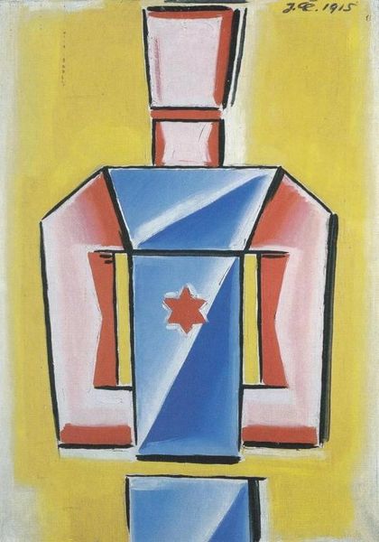 Curator: We’re looking at Otto Gustav Carlsund’s "Komposition," an intriguing mixed-media work. Editor: It feels immediately graphic, almost like an advertisement or signage, with that confident layering of shapes. You can almost smell the ink or feel the texture of the paper. Curator: He worked in painting and collage, here using acrylic paint and paper to conjure a sense of modernist optimism and precision. Note how those geometric shapes overlap, suggesting both dynamism and structure. There’s an embrace of typography too. Editor: And such deliberate craftsmanship on display here, layering media in such a direct way. It isn't striving to be timeless or universal, it's clearly coming from a moment rooted in industry. There's the directness of color – those ochres and reds feel almost utilitarian. It acknowledges the means of production right in its forms. Curator: I agree. These compositions from this period often symbolize a desire for a new world, for streamlined efficiency after the devastation of war. These basic forms are actually meant to be more than just surface aesthetics—the square and the circle can evoke fundamental archetypes and speak to an ordered future. Editor: I think that's right. Looking closely, one sees areas where paint application isn’t entirely uniform, revealing a handmade quality amidst all the geometry. We have the mark of labor visible even in the machine-age forms! Curator: It does provide a compelling juxtaposition between that handcrafted sensibility and the ideals of the machine age that you describe, suggesting perhaps that even within mechanization there’s room for human intervention and vision. Editor: Right, like Carlsund’s vision translates to our interpretation – there are these hints to cultural and material shifts still accessible through visual culture, so many years later. Curator: It's amazing how such spare means can elicit these dialogues across time! Editor: Absolutely. It's that simple visual directness that ensures the artwork maintains its contemporary appeal even now.