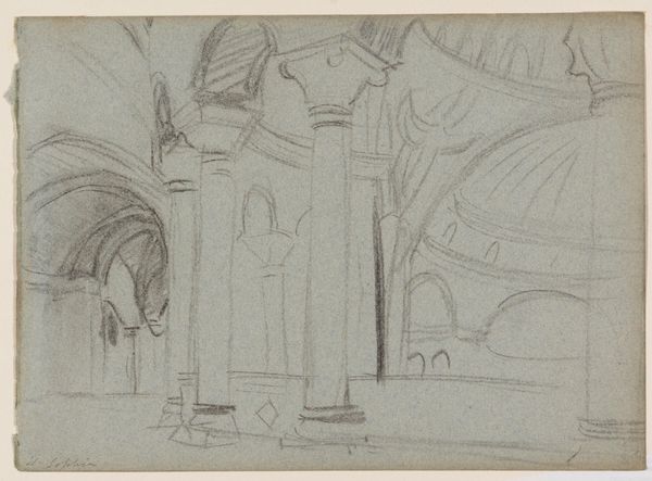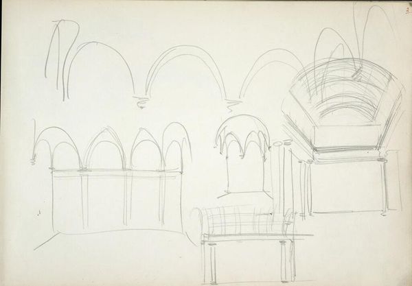 Curator: This is John Singer Sargent’s "Sketches for Lunettes, Boston Public Library." Editor: My goodness, it's all so preliminary and ethereal, like a dream half-remembered. Curator: Sargent was, of course, formulating his murals at the BPL. What we're seeing is the dance between architectural space and narrative content. Note how he wrestles with form and figures. Editor: The arches themselves seem to echo a kind of visual language of protection, or maybe reverence, in a sacred space. It suggests a long tradition of using architecture to tell stories. Curator: Indeed, he’s channeling a powerful artistic heritage. It's fascinating to witness Sargent's mind at work, grappling with ideas before they crystallize. Editor: It’s also amazing how a few lines can evoke such a sense of grand scale, especially when you consider the final installation. Curator: Absolutely, you sense that vastness here, captured so succinctly.