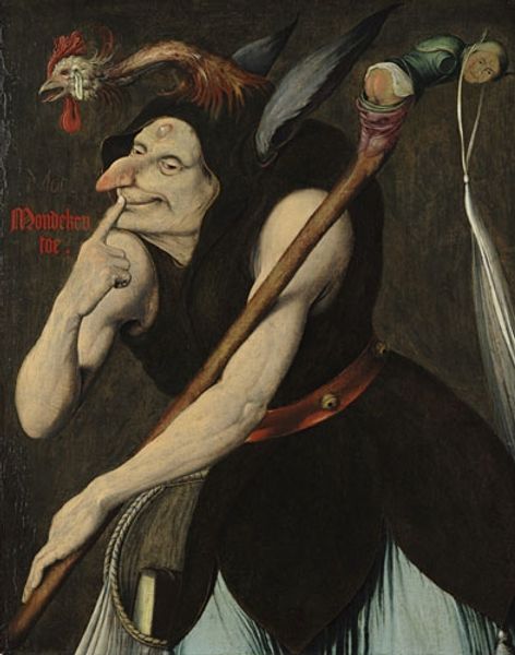 Editor: Here we have an untitled oil painting by Arturo Rivera. The figure is compelling but also unnerving. What visual elements stand out to you most, and how do they contribute to the overall impact of the work? Curator: The composition immediately strikes me. Notice how Rivera constructs the pictorial space. The confined room, rendered in earth tones, establishes a distinct contrast with the figure’s skin, and the brilliant blue fabric they sit on. The perspective, though somewhat distorted, directs the viewer’s eye along a calculated path, culminating in the ambiguous vanishing point in the hallway. Editor: So, you're saying that it's the tension between the individual elements and how they are constructed that generates this uneasy atmosphere? Curator: Precisely. Furthermore, consider the texture Rivera achieves with the oil paint. There is a tangible quality to the skin, a roughness that contrasts with the relatively smooth rendering of the background. The varying paint application adds another layer of complexity. Is it crude or purposeful? Editor: It feels deliberate. There's a careful layering, I think, creating shadows and highlighting the figure's anatomy. The expressiveness and brushwork adds to that feeling. I hadn’t really focused on it at first but comparing it to that shrouded figure you start to feel its intent more, that makes a lot of sense. Curator: Indeed. And observe how the artist uses color. The muted palette intensifies the effect. What might brighter colours do? They are confined only to specific parts and work against the monochrome. Editor: You're right, it would disrupt the painting's inherent tonal contrast and overall cohesion of composition. It sounds so simple, but by seeing the visual elements I see the strategy that the artist used. Curator: This strategy shows that what may feel unsettling and disordered becomes highly controlled with close looking, almost a kind of emotional formalism.