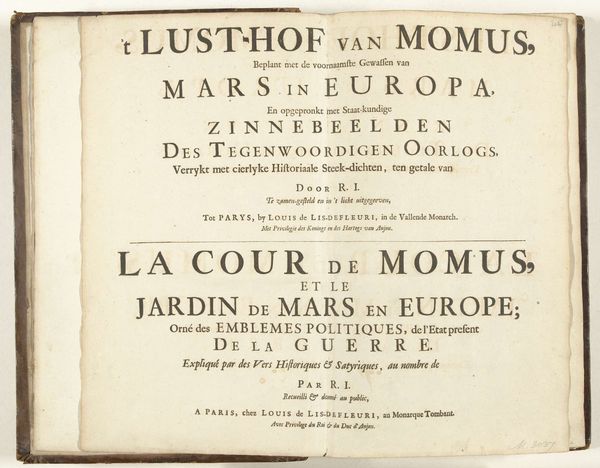 This is the title page of the sixth part of Nicolas de Fer’s “Les forces de l’Europe,” printed in 1696. The page presents a study in typographic hierarchy and spatial organization. Notice how De Fer employs varying font sizes and weights to structure the viewer’s reading experience. The title, emblazoned in large, bold fonts, immediately captures attention, while subsequent lines decrease in size to guide the reader through layers of detail and context. The use of red ink for selective emphasis creates a visual rhythm that underscores key phrases. The structural clarity on display is more than aesthetic. It reflects a broader intellectual framework of the period, where the systematic classification and ordering of information were highly valued. De Fer presents not just a title, but a meticulously structured index to the contents within, encapsulating the spirit of the era’s cartographic and political ambitions. The layout of the printed word offers a lens through which to view the complexities of European power.