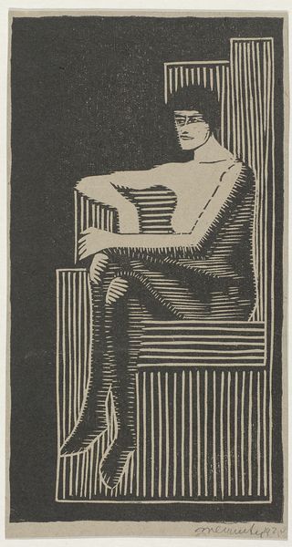 This is Samuel Jessurun de Mesquita’s Harlekijn, made with a woodcut. This is a relief printing process, where the artist carves away the areas that will not be inked, leaving the image raised on the block's surface. The choice of wood as a material is significant. Its inherent grain influences the final print, adding texture and a handcrafted feel. The bold lines and strong contrast in the image are a direct result of the woodcut technique. Notice the patterns on Harlekijn's costume and the details in the background; each mark had to be carefully cut into the wood. Woodcut is a relatively accessible medium. Its directness contrasts with the complexities of modern industrial production. By embracing this process, Mesquita elevates the value of traditional craft. He is reminding us of the human effort involved in creating an image, challenging the division between art and craft.