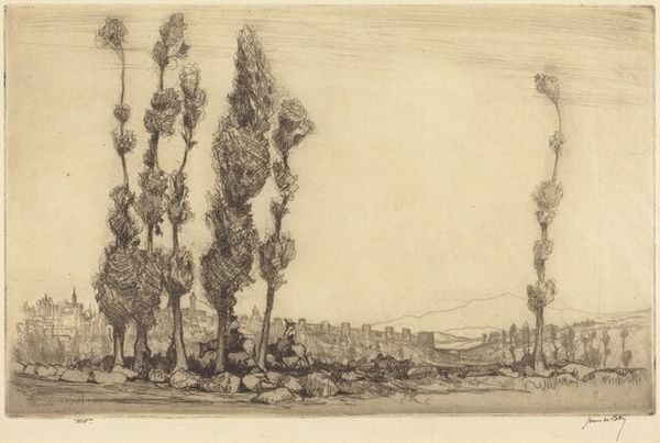 This is Joseph Pennell’s etching, "The Avenue," now housed in the Minneapolis Institute of Art. The rows of trees lining the avenue are a striking motif, reminiscent of processional avenues of ancient Greece. Consider the ancient significance of trees, often seen as symbols of life, growth, and connectivity between the earthly and spiritual realms. In ancient cultures, sacred groves were places of worship, and the avenues leading to temples were lined with trees, creating a sense of reverence and anticipation. Pennell’s avenue evokes a similar feeling of passage, guiding the viewer’s eye towards the industrial buildings in the background. The juxtaposition of nature and industry creates a tension, reflecting the modern era’s complex relationship with progress. The avenue serves as a pathway, a visual metaphor for the journey from the natural world to the constructed environment. This cyclical progression highlights the enduring human drive to shape and transform our surroundings, a theme that echoes across cultures and centuries.