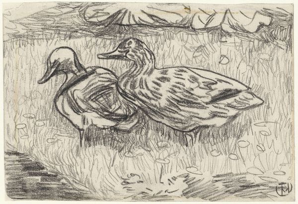 Editor: Here we have Arnold Peter Weisz-Kubínčan’s "Hunting Scene," created in the 1930s, using pen and ink. The frenetic energy of the chase is palpable. A dog pursues a rabbit through dense undergrowth. What do you see in this piece? Curator: Beyond the immediate depiction of the hunt, I see a visual representation of power dynamics deeply embedded within society. The dog, a symbol of domestication and control, chases the rabbit, representing the vulnerable and the pursued. The landscape itself, rendered in stark ink lines, feels oppressive, reflecting the limited spaces for resistance. Consider how this pursuit mirrors broader systems of oppression. Editor: Oppression? That's a strong word for what seems like a straightforward depiction of a hunt. Curator: But is it straightforward? Think about the historical context. The 1930s were a time of immense social and political upheaval, a period marked by the rise of totalitarian regimes and escalating persecution. Doesn’t this chase resonate with the targeting of marginalized groups, always fleeing, never safe? Weisz-Kubínčan himself faced persecution. Editor: I never would have considered that. The quick, almost frantic lines now speak to something more than just physical speed. Is that something the artist intended, do you think? Curator: Intention is less important than impact. Whether consciously or not, artists are products of their time. This piece acts as a microcosm of larger societal structures, reflecting themes of dominance, survival, and the inherent violence within those power structures. Editor: So, the act of hunting becomes a metaphor for systemic oppression. It's given me a lot to think about – a whole new perspective on what seemed a simple drawing. Curator: Precisely. Art invites us to question the narratives we take for granted. I think the true value lies in its capacity to expose the hidden dynamics shaping our world.