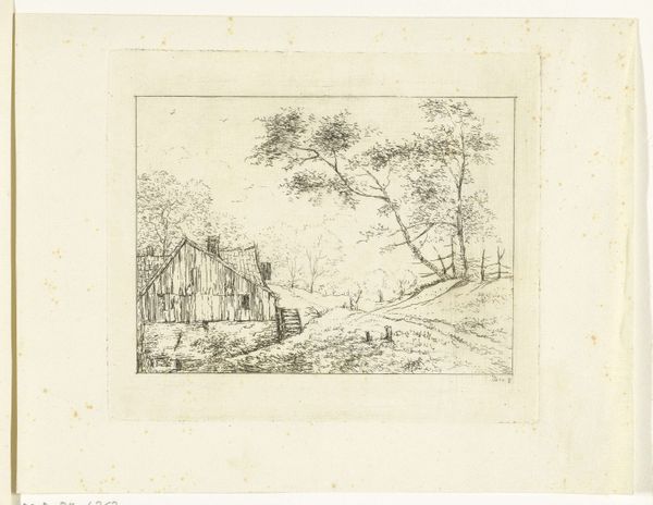 Editor: We’re looking at “View of a Village,” an etching by Laurent Herman Redig from 1860. It gives me a cozy, lived-in kind of feeling, like stepping back in time. What catches your eye in this seemingly simple scene? Curator: That “cozy” feeling you describe—it's pure Romantic nostalgia dressed up as Realism! Redig, working in a period hungry for both truth and beauty, gives us what appears to be an objective slice of village life. Notice how the light gently falls, but there’s a real working-class story unfolding—people hauling wood, families gathered near the water… but is it idealized? Look at that almost picturesque arrangement of figures. Editor: I see what you mean. So, it's like he’s staging reality to make a point? Curator: Precisely! He isn’t just showing us what *is*; he’s shaping our perception. And the medium of etching itself— so delicate, so precise. What do you think it communicates about the artist's intention? Is it meant to feel grand and historical or like a snapshot in time? Editor: A snapshot, maybe, but definitely a thoughtful one! I like the detail, the way it draws you into their daily life, but from a distance. Curator: Exactly! Like a memory, almost. The personal filter is undeniable and fascinating. Editor: So much more than just a pretty picture then! Curator: Absolutely! It’s about memory, perception, and the artistic hand shaping our view of a specific cultural moment. Made me see village life through a different lense.