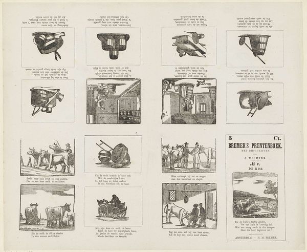 Daniel Nikolaus Chodowiecki, a prominent figure of the Enlightenment era, created this print titled 'Examples of masculine nouns in Latin' using etching techniques. The artwork functions as a visual aid for learning Latin, categorizing nouns through a series of images. Born in Danzig, now Gdańsk, Chodowiecki straddled Polish, German, and French cultural spheres, reflecting the complex identities of the time. His art often mirrored the Enlightenment's focus on education and reason, but also engaged with the social realities around him. This piece, intended for educational purposes, intersects with gender norms by associating certain nouns with masculinity. Think about the implications of gendering language and knowledge. Each image opens up a discussion about societal roles and expectations attributed to men. The act of learning itself was often gendered, influencing who had access to education and knowledge. This print provides a glimpse into the ways in which language and learning were structured by gender during the Enlightenment, subtly shaping our understanding of the world.