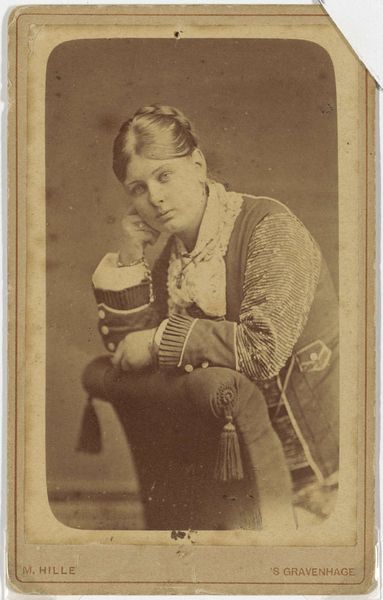 Editor: This photograph, taken by the McClees Gallery, depicts Upi-t-ya-hde-a, also known as Tail-Feather Joined, a Wa-pe-ton Sioux Chief. It feels very posed, almost staged. What historical context informs this image? Curator: Well, these early photographs of Native Americans often served a dual purpose. Ostensibly portraits, they also functioned as documentation for a rapidly changing society. How do you think the setting might have influenced the perception of the subject at the time? Editor: Perhaps it was intended to present a tamed or civilized image to the dominant culture. It is a far cry from the reality of life for the Wa-pe-ton Sioux. Curator: Precisely. The photograph becomes a political artifact, shaped by the power dynamics between the photographer, the subject, and the intended audience. Editor: I see how the image's creation and reception are inherently political. Thanks for pointing that out. Curator: My pleasure. Analyzing art through the lens of history reveals so much more than just aesthetics.