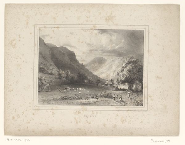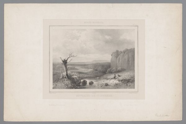 Paulus Lauters rendered this view of the Meuse River at Poilvache using lithography. This printmaking technique, developed in the late 18th century, allowed for the relatively quick and inexpensive reproduction of images. The process involves drawing an image with a greasy substance on a flat stone or metal plate, then treating it with chemicals so that ink adheres only to the drawn areas. Consider how the lithographic process enabled a wider distribution of landscape views like this one, influencing popular perceptions of nature and place. The soft, grainy texture characteristic of lithography lends a gentle, atmospheric quality to the scene, inviting the viewer to imagine themselves in this idyllic setting. In contrast to the rapid reproducibility afforded by lithography, notice the amount of labor that went into the landscape scene itself, from the hard labor of mining the rocks that built the fortress to the transportation and trade happening on the river. By appreciating the means of production behind this artwork, we can better understand its place within broader social and cultural contexts, challenging any strict divide between art, craft, and industry.