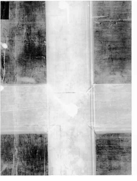 Curator: Here we see an x-radiograph of "Le Pont", originally by Gustave Courbet, residing in the Harvard Art Museums. Editor: It looks like we're peering beneath the surface, a ghostly view revealing the canvas's very bones and structure. Curator: Indeed. This glimpse into the underlayers allows us to consider Courbet's process, how he might have built up the painting, and what alterations he may have made. Editor: It's fascinating to consider the materiality, the weave of the canvas itself, and how that dictated the application of paint. What about the social context of painting at the time? Curator: Absolutely. Courbet positioned himself in opposition to academic painting, emphasizing direct observation and the physical act of applying paint, making this radiographic view incredibly relevant to how we understand his radical approach. Editor: Seeing the infrastructure reminds me of the hidden labour that supports the facade of art. Curator: A fitting perspective. It underscores how much labour and technique went into even what appeared to be spontaneous works. Editor: This peek behind the curtain really makes me consider the raw physicality present even in fine art. Curator: And for me, it speaks to the institution's commitment to unveiling the complexities of art history.