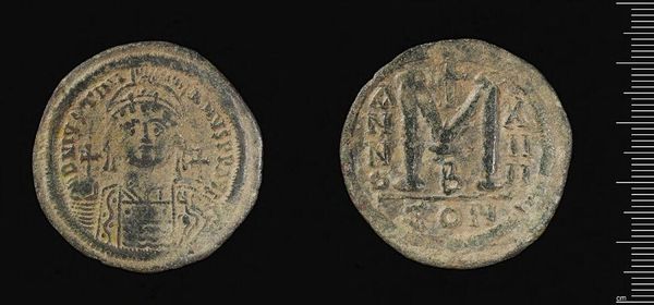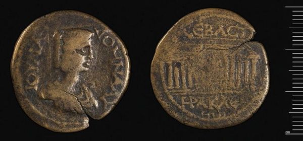 Editor: This is a coin of Justinian I, weighing about 21.47 grams. It's fascinating how a small object like this reflects power. What can you tell us about its means of production and impact? Curator: The coin's materiality speaks volumes. Bronze, not gold, indicates a specific level of economic transaction and the state's control over resource distribution. We should ask: who mined the metal, who struck the coin, and how did its value affect daily life? Editor: So, it’s less about the artistic merit and more about the social and economic systems at play? Curator: Precisely! It challenges the traditional view of art by highlighting the labor, materiality, and consumption involved in creating even a seemingly simple object. What can this tell us about the Roman Empire's system of labor and social stratification? Editor: That's a really insightful way to look at it. I've never thought about art in terms of labor and material processes. Curator: Considering the coin's circulation helps us rethink traditional boundaries between art, craft, and everyday life.