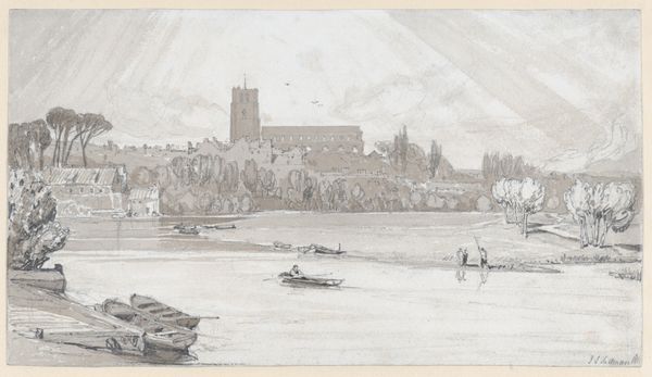Curator: Let's delve into this intriguing ink drawing, "Stadt am Meer mit Befestigung," or "City by the Sea with Fortification," by Carl Friedrich von Rumohr, currently residing here at the Städel Museum. While the precise date of its creation remains unconfirmed, the stylistic elements firmly root it within the Romanticism movement. Editor: It’s kind of gloomy, isn’t it? All soft greys and sepia tones. Gives you the feeling of a dream fading at the edges. And the way he suggests form, hinting more than defining, I find quite striking. Curator: Absolutely, and this ambiguity invites us to consider the work through the lens of its socio-political context. Von Rumohr lived through a period of immense upheaval with the Napoleonic wars shaping the political landscape of Europe. Cityscapes, like this one, become interesting signifiers. Editor: Oh, I like that, yes. A dream-like recollection but also something strong, sturdy. Like remembering somewhere solid during difficult times. And that little boat on the water, makes me want to hop right in, even on such a somber day. Curator: The very subject itself, the city with its fortifications, underscores a period grappling with concepts of national identity and defense. Notice how the ink is layered. These architectural landmarks speak volumes about societal values embedded in spatial organization and historical preservation during the artist's time. Editor: Thinking about values, yes! And maybe even aspirations? A city perched near the sea…that makes me think of opportunity, newness. And it also seems so isolated. Makes me feel calm just looking at it. Curator: Calm yet resilient, perhaps? Reflecting the ethos of a society striving to secure its heritage while embracing change? Editor: Exactly. So much in one tiny, watery, dream. Curator: Indeed. This piece serves as a poignant reminder of the interconnectedness of art, history, and social consciousness. It beckons us to decode how art reflects and shapes our comprehension of collective identity during times of adversity. Editor: Makes you see more the longer you look, doesn’t it? Right, then. Let's go find something more upbeat... or not!