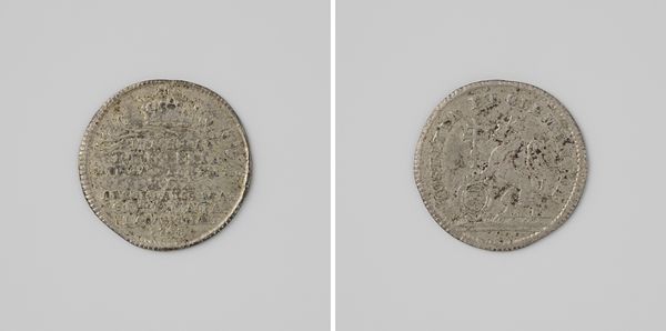 This small copper coin commemorates the inauguration of François-Hercule, Duke of Anjou, as Count of Flanders in Ghent. Its circular form, though slightly irregular due to its age, presents a study in the interplay of relief and recession. The surfaces are divided into fields of representation: one side bears the profile of the Duke, encircled by an inscription, while the other features a complex heraldic shield. The relief is shallow, yet it effectively uses the contrast of light and shadow to articulate form. The coin's structure reflects the symbolic order of its time, where the representation of power was meticulously coded. The heraldic shield, a semiotic device in itself, communicates lineage, authority, and territorial claims. The circular shape, unbroken, could be interpreted as a symbol of unity and completeness. However, the coin's worn condition destabilizes any fixed meaning, reminding us that history is always subject to erosion and reinterpretation.