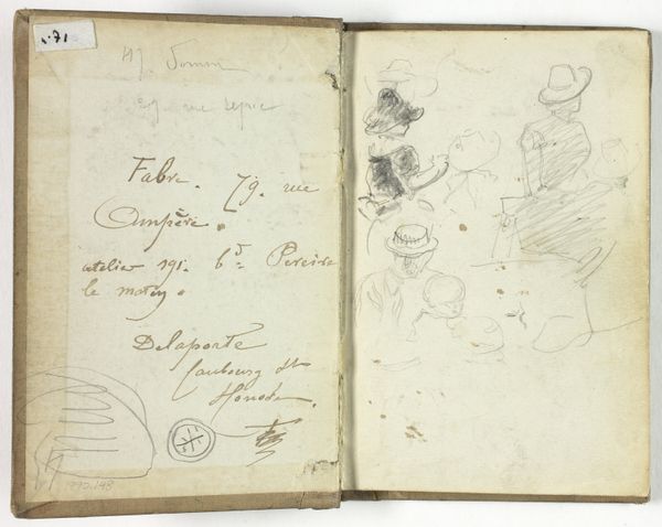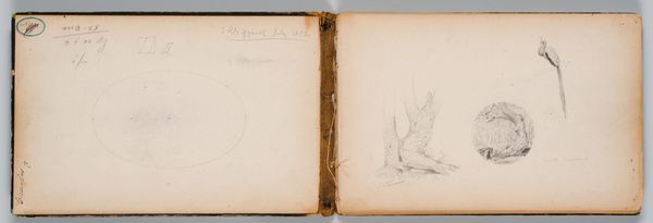 This is "Politieke allegorie; de kroon van Boeginese koning," a drawing made by Jan Brandes around the late 18th century. The open notebook page reveals a layered composition that juxtaposes text with sketched scenes and a detailed rendering of a crown. The dominant visual experience is one of fragmentation, where each element competes for attention, yet the underlying structure suggests a deliberate arrangement. Brandes uses line and form to construct a narrative across the page. At the top, a series of figures are outlined with quick, expressive lines. The crown, colored in shades of gold, introduces a focal point through its symbolic weight and detailed execution. The juxtaposition of text and image invites a semiotic interpretation. Each functions as a sign contributing to a broader commentary, perhaps challenging fixed meanings or engaging with power representation. The visual arrangement and the use of annotations reflect a structuralist approach to understanding cultural artifacts, suggesting that meaning is created through the relationships between different elements within a system. The interplay between the sketches and the detailed crown destabilizes a singular reading, underscoring art as a site for ongoing interpretation and reinterpretation.