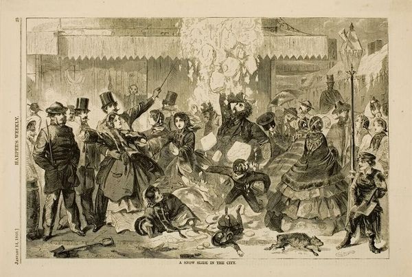 Winslow Homer created this print, *A Bivouac Fire on the Potomac*, to depict a scene from the American Civil War. Dominating the composition is the fire, around which soldiers gather. The fire serves not only as a source of warmth and light, but also as a potent symbol of community. Throughout history, the motif of figures gathered around a fire has recurred in countless forms. Think of Plato’s cave allegory, where shadows cast by fire represent humanity’s limited perception of truth, or the hearth as the heart of the home. Even earlier, in cave paintings we see people represented around a fire. This primal image speaks to our collective memory of communal storytelling. The image taps into a deep-seated need for connection and shared experience, highlighting how storytelling around the fire has served as a means of cultural transmission across generations. The motif’s persistent recurrence shows how images of a fire continue to engage viewers on a deep, subconscious level. It acts as a powerful emblem of shared experience, warmth, and communal storytelling, highlighting the cyclical progression of symbols and the enduring power of cultural memory.