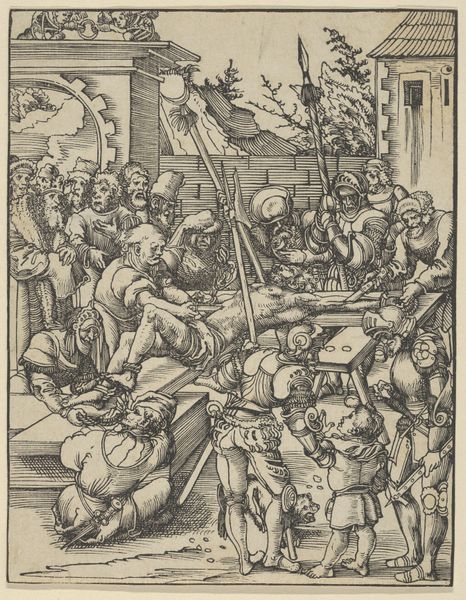 Lucas Cranach the Elder made this woodcut, "Christ Crowned with Thorns," as part of his "Passion" series. Printed images like this one played a crucial role in disseminating religious ideas during the Reformation in 16th-century Germany. Cranach was the court painter for the Electors of Saxony, who were key supporters of Martin Luther. Here, Christ is surrounded by tormentors, their faces grotesque and cruel. They mock him, pressing a crown of thorns onto his head and placing a reed in his hand as a false scepter. Below, figures writhe in anguish, perhaps representing the human cost of religious conflict. The scene is charged with anti-Catholic sentiment, reflecting the period's intense religious and political struggles. To truly understand this work, we delve into the history of the Reformation, examining theological debates, political alliances, and the social upheavals that shaped Cranach's world. Art history is about understanding the dynamic interplay between images and the society that produced them.