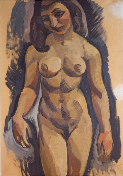 Henri Matisse's 'Seated Woman' is a study in contrasts, executed with expressive brushwork on a textured canvas. The nude figure is painted with dynamic strokes of purples and browns, set against a cooler, greenish-yellow background. The surface is alive with visible gestures, evoking a sense of immediacy. Matisse, known for his Fauvist use of colour, plays here with shadow and light to suggest volume, challenging traditional notions of form. The sitter's pose, rendered with a blend of realism and abstraction, invites a dialogue about representation itself. We see the underlying structure, the bones of the composition made visible. The painting thus operates not merely as a depiction, but as an exploration of the act of seeing and portraying the human form. It encourages us to consider how lines and colors can destabilize conventional understandings of beauty and aesthetics, opening new avenues for artistic expression.
