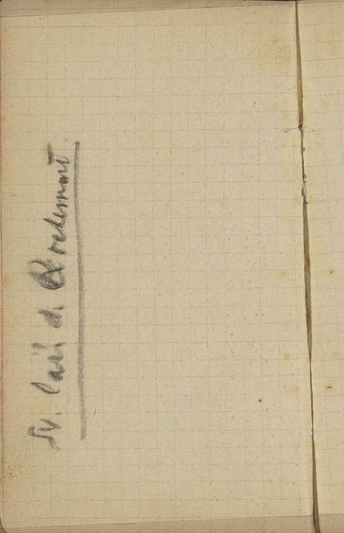 Editor: So, this is Breitner’s “Annotatie,” made in 1896. It's a pen and pencil drawing on paper and it almost looks like a page torn from a notebook, but kept safe in the Rijksmuseum! What strikes me is the ambiguity – is this a doodle, a sketch, or something more deliberate? What catches your eye about it? Curator: You know, it whispers to me of a hidden language, almost like a secret code from Breitner. Think about it – he was deeply embedded in capturing the grit and reality of Amsterdam. Could this be a personal key to unlocking some element of that world? The grid-like background anchors the writing, lending it weight, whilst simultaneously feeling off the cuff. Editor: A secret code! I love that idea. So you think the setting– the graph paper– is part of the message? Curator: It hints at structure, Editor, beneath the surface. Like a city’s foundations. Or maybe Breitner's personal method for finding structure amongst the chaos of the everyday. What I can see written in faded pencil says 'H. de Raauw' then 'Alexanderkplei, 3' which means Alexander Square number 3. Who do you think lived there, and what purpose did it serve? A model? A friend? Somewhere to buy art supplies? Editor: Hmmm... it really gets you thinking! What I like most about it now is that what at first seems simple can suddenly feel quite deep and full of hidden meanings. It's as though Breitner is inviting us into his personal world in Amsterdam. Curator: Absolutely. It encourages us to consider what he considers, you know?