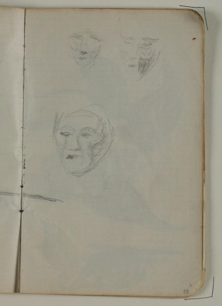 Curator: This sheet presents a collection of studies by Niels Larsen Stevns dating from between 1906 and 1910, held here at the SMK. It’s titled "Studies of Egyptian Statue Heads and Flowers with Color Indications." Editor: It has a tentative, fleeting quality, like capturing impressions. The faint pencil lines almost float on the page. Curator: Indeed. What's compelling here is the encounter between Stevns, the Danish artist, and the cultural legacy of ancient Egypt, which he engaged through the institutional space of the museum. Editor: There's a certain detachment, though. These aren’t fully realized portraits, but skeletal sketches, preliminary ideas—even the flowers seem secondary, mere afterthoughts to the monumental Egyptian heads. Curator: Right, and his inscription about the coloring indicates the nature of his study: extracting specific information for his broader artistic goals. Remember, this was during a period when European artists were intensely engaging with non-Western art, appropriating from and being inspired by other cultural traditions. Editor: Looking at the variations in line weight, it does convey his careful, albeit brief, observation. How each contour describes the planes and volumes differently. There is something fragmented, yet the overall composition holds the viewer's interest. Curator: Yes, it illustrates the artistic license Stevns takes when encountering cultural artifacts, a perfect example of how institutions became a site where global artistic influence was expressed and integrated into Western practices. It also opens interesting debates about authenticity, ownership, and artistic interpretation of other cultures' art within Western academic institutions. Editor: These fleeting drawings offer such insight. There’s beauty in their incompleteness. Curator: They illuminate an artist finding his own voice through dialog with history, a process this museum aims to foster with its visitors today.