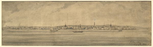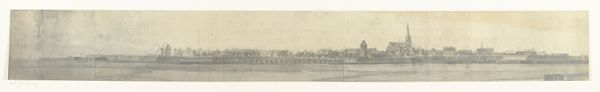 In 1672, the frères Moreau created this vista of Vreeswijk using pen and gray ink, a technique that lends itself to the depiction of architectural and natural forms. The drawing is dominated by a vast expanse of water, its surface rendered with subtle variations in tone to suggest depth and movement. The town itself is a study in horizontality, a line of structures punctuated by the vertical assertion of a windmill. This stark contrast in form introduces a dynamic tension. The composition is divided almost equally between the sky, the town, and the water, a structure that balances the ephemeral with the concrete. The semiotic reading here suggests a discourse on space and perspective, where the town and the water represent human and natural realms, coexisting yet distinct. The lines of the drawing, though delicate, carry a weight of historical and cultural context. They invite a contemplation of the town’s position within the landscape and its relationship to the viewer. The drawing serves not just as a visual record, but as a point of departure for broader philosophical inquiries.