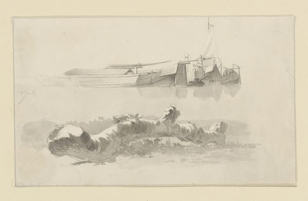 Editor: Here we have Eugène Lepoittevin's "Vissersboot op zee met zes opvarenden," or "Fishing boat at sea with six crew members," from 1832. It’s an engraving, and it strikes me as very…stark. Almost bleak, with the rough sea and the somewhat worn boat. What can you tell me about it? Curator: Well, let's consider the materiality of the print itself. An engraving, multiple impressions possible, meant for wider circulation than a painting. What does this accessibility tell us about the intended audience and the message the artist, and perhaps more importantly, the publisher, aimed to convey? Consider the social context: who was buying these prints, and what aspects of daily life—like the labour of fishermen depicted—were they consuming as art? Editor: So you're saying that the medium itself—the engraving—suggests it was meant to reach a wider audience and maybe even comment on the lives of the working class? Curator: Exactly. Furthermore, let’s not overlook the 'how' of the piece. Lepoittevin’s labor, the engraver’s skill translating the scene onto a plate… These details become paramount. How does the printmaking process itself shape our understanding of the scene depicted, and our relationship to it as consumers of art? Editor: That's a different way of looking at it, rather than just focusing on the image itself. I'm so used to analyzing the composition. Curator: And we shouldn't ignore the depicted materials. The wooden boat, the rough sea...These were directly linked to the lives of the fishermen. Romanticism often idealizes, but by representing it in a reproducible, consumable format, it raises questions about the romanticizing—or perhaps exploiting—of labour and lived experience for public consumption. Editor: That's really fascinating! I hadn't considered how the *process* and the materials used to create the art change its meaning. It goes beyond the aesthetic to the social. Curator: Precisely! By examining the means of production, the materiality, and the intended audience, we gain a far richer understanding.