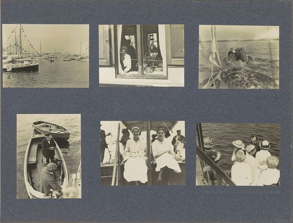 Editor: So, here we have “Two Photos of a Boat Trip in August 1922,” a gelatin silver print by Hendrik Herman van den Berg. It’s interesting how these two images are presented side-by-side, capturing different groups of people and activities on what seems like the same sailing trip. What strikes you when you look at these? Curator: Ah, what strikes me... well, beyond the rather delightful snapshot of bourgeois leisure, I think it whispers something about time itself. You see those sepia tones, the slightly faded quality of the gelatin silver print? It's not just a visual choice; it's almost like the image *itself* remembers a past summer day. Hendrik wasn't simply pointing and shooting; he was trying to bottle the essence of a memory, wasn't he? Look at the way the light falls; it's almost caressing the figures, imbuing them with a sense of dreamlike beauty. What do you make of that? Editor: I do get the sense that he’s trying to capture an experience, especially since it’s more candid and snapshot-like, despite it clearly being arranged. The realism almost seems accidental. Curator: Accidental...perhaps. Or perhaps artful accident? Consider the Pictorialist movement of the time – Van den Berg clearly dabbles. They aimed for photography to be seen as fine art, so often manipulating the images to mimic paintings. Now look again at those children on the deck… aren't they just paintings sprung to life for a summer's day? Do you suppose this picture is telling us less about that actual day and more about our longing for simpler times? Editor: That's an interesting thought! I hadn't considered that the style might be creating a sort of idealized memory. I guess that makes it timeless, really. Thanks, I learned a lot! Curator: My pleasure, It seems Van den Berg has the last laugh...a photograph both firmly fixed in time and, at the same time, blissfully adrift.