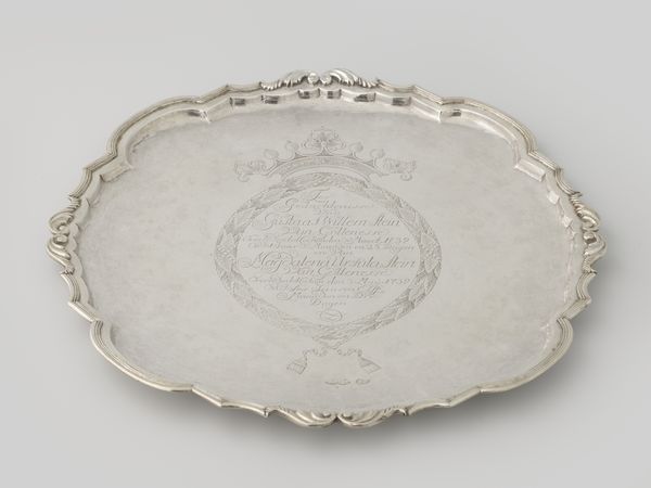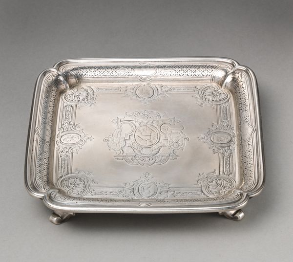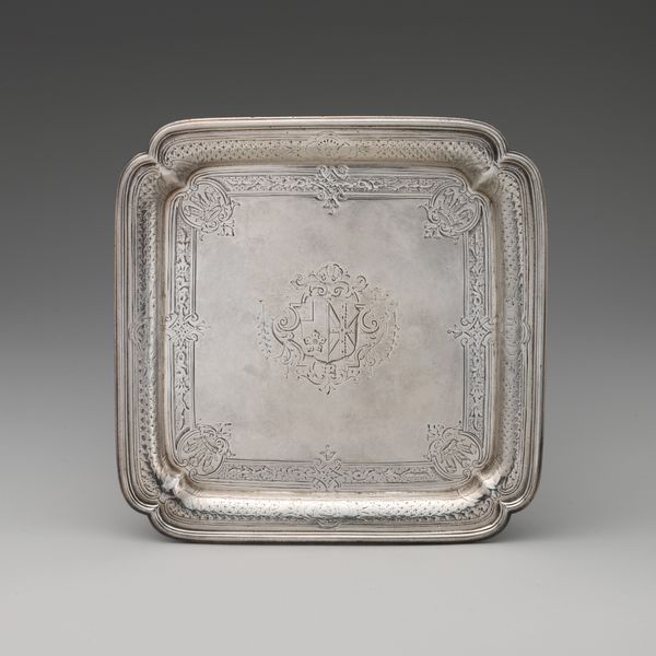 Jacob Hurd was one of five of the most prominent Boston goldsmiths between the 1720s and 1750 and was one of the most talented engravers of this period, influencing the designs of numerous others. His skill is evidenced in the delicately engraved border of this salver. Unfortunately, some of this fine work is no longer visible in the center cartouche's engraving as the original coat of arms or initials have been removed by a previous owner. Small waiters such as this were often used as stands for coffeepots to prevent the hot vessel from damaging the surface of the table beneath.