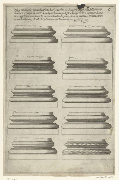 Jean Pelletier made this print of three cornices for cabinets around 1736. The artist created this print as part of a series of architectural designs for interior decoration, specifically tailored for the elite. Cornices like these weren't just about decoration; they signified status and wealth. During this period, interior design reflected social hierarchies, with elaborate details reserved for the homes of the aristocracy and wealthy merchant class. The design shows the institutional structures that maintained social status and nobility through carefully crafted cultural objects. Pelletier’s meticulous rendering emphasizes the craftsmanship and artistry involved, reinforcing the value placed on artisanal skill within the economy of 18th-century France. Studying such prints involves delving into pattern books, architectural treatises, and social histories of design. Understanding the cultural context allows us to see how art and design played a crucial role in shaping social identities and power dynamics during this era.
