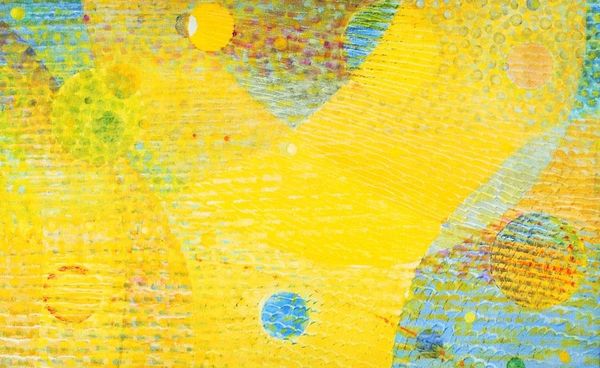 Editor: We're looking at "Earth’s Creation 1," painted in 1994 by Emily Kame Kngwarreye, using acrylics. The colors just explode – blues, greens, yellows, like looking at a vibrant garden from above. It’s intensely… energetic. What do you see in it? Curator: Energetic is a brilliant way to put it! I feel it too – almost like the Earth is breathing, exhaling color and life. Kngwarreye, you see, wasn’t just painting a pretty picture; she was translating the very essence of her ancestral lands, the Australian outback, into something palpable. It’s her Dreaming, her connection to the land made visible. Do you feel that connection coming through? Editor: Definitely. I guess it's like less about depicting the land, and more about evoking it… through color and texture? Curator: Precisely! The dotting technique, the layering of hues – it’s not accidental. Think about the layers of sediment, the changes in the landscape, the life cycles playing out. She's not illustrating, she's embodying. I sometimes feel like the painting pulses; it's almost dizzying. Editor: So it's not just seeing, but also feeling the land? Curator: Yes! And the 'Creation' part of the title? It speaks volumes. The Earth isn't static, is it? It’s a constant process of becoming. What do you think Kngwarreye is saying about creation, do you feel? Editor: That it is ongoing? And beautiful, maybe messy? Curator: Messy, chaotic, and bursting with vitality. I feel humbled; art shows how Creation manifests in all sorts of glorious ways, if we pause to contemplate it. Editor: I'm seeing it completely differently now – like witnessing an ongoing miracle.