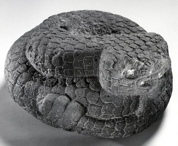 Curator: This intriguing sculpture is entitled “Coiled Serpent.” It is currently located here at the Met. Editor: My first impression is its sense of contained power, like a spring tightly wound and ready to unleash. The stone, whatever it is, feels very dense. Curator: Indeed. The serpent is a powerful symbol in Mesoamerican cultures, frequently linked with cyclical renewal and the earth’s fertility. Its presence within a culture reveals a complex layering of meaning that speaks to regeneration. Editor: You see that coiling and I see ouroboros, the snake eating its own tail—an ancient symbol present across cultures that means continuity. The serpent is an old archetype for transformation too; it sheds its skin to begin again. Curator: We see this manifested through the role of the serpent deity Quetzalcoatl in Aztec culture, who was responsible for the creation of humans and sustenance. The prevalence of this imagery highlights the societal anxieties of a population undergoing change. Editor: Look how the artist has stylized the scales! This adds to that feeling of latent power and restrained potential energy. It's beautiful and dangerous. This piece speaks volumes without uttering a single word. The serpent is whispering things about what the old ways means, but is coiling, keeping its true self still hidden. Curator: Right. This “Coiled Serpent” becomes not just a work of art, but a historical touchstone reflecting beliefs about the cosmos and humankind’s place within it. Editor: Understanding this sculpture provides a look at a culture’s deepest values—the universal hope for continuity and transformation when facing what is new.