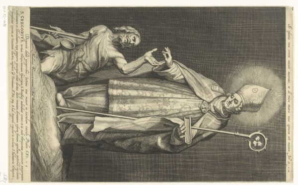 Editor: Here we have Frans Schwartz's 1901 etching, "Prøveplade: Liggende mand og en Kristusfigur foroven," which translates to "Trial Plate: Lying Man and a Christ Figure Above." It features these two stark figures, rendered in dense crosshatching. It feels incredibly personal and somber to me. What do you see in this piece? Curator: The print, made around the turn of the century, places itself in dialogue with a potent symbol in art history: Christ. Consider the context of late 19th-century anxieties—the questioning of faith, the rise of scientific rationalism. How might Schwartz be engaging with these broader cultural shifts? Notice the raw depiction, contrasting sharply with idealized Renaissance portrayals of Christ. Editor: That's fascinating! So the "trial plate" aspect suggests he's experimenting with this religious imagery in a new, perhaps challenging, way? Curator: Exactly! Etchings, due to their reproducibility, held a unique position in democratizing imagery. Who had access to this image, and how might its accessibility influence public perception of faith and suffering? Editor: That makes sense. It’s not just the content but how it's being distributed that matters. The original would probably be painted on canvas and accessible only to very few. But as an etching… far wider. Curator: Precisely. And Schwartz’s choices, the gritty lines, the vulnerable figures – they steer away from traditional religious grandeur. Editor: So, seeing this as a "trial plate" in a social context emphasizes the artist’s intent to experiment with widely accepted narratives, influencing what it represented to the public, then and now. That's a really interesting lens to see it through. Curator: Indeed, art provides an interesting window into shifts in social understanding of grand historical events, people and movements.