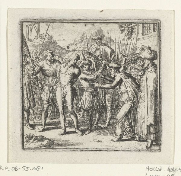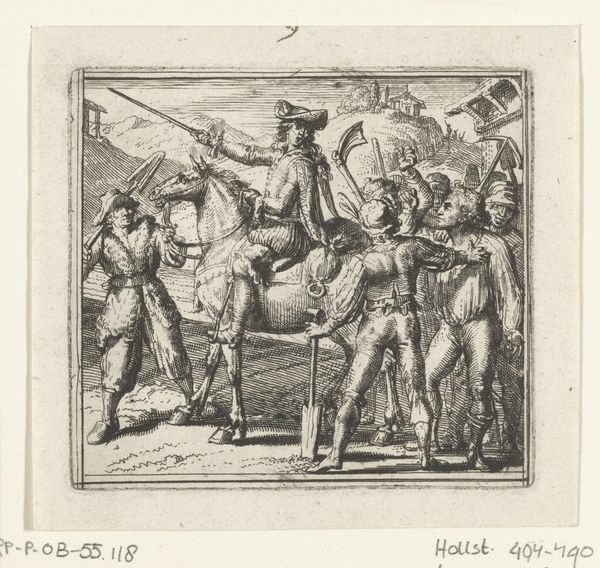 This is an anonymous print called ‘Triomftocht’ at the Rijksmuseum, made using etching. The composition is dominated by linear precision, a hallmark of the etching technique. Observe how the artist uses dense, parallel lines to build tone and shadow, creating a sense of depth. The procession moves from left to right with figures and objects overlapping each other. The visual effect conveys a dynamic sense of movement. This work appears to reference classical antiquity. We might consider the cultural codes embedded within its visual elements. The procession, laden with artifacts, suggests a narrative of conquest and triumph. Yet, the two-dimensional space and lack of individualized features prompts questions about the nature of representation and power. The linear texture and formal arrangement of figures invites continuous interpretation, making ‘Triomftocht’ a compelling example of how visual structure can function within a broader cultural discourse.