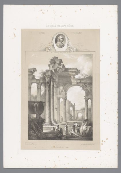 Editor: Okay, so here we have Joseph-Philibert Girault de Prangey's "Détails, mosquée d’Amrou, au Kaire," created in 1843. It looks like a print made with ink and watercolor. I’m really drawn to the composition, the way the artist juxtaposes these incredibly detailed architectural fragments with the overall structure of the mosque. What captures your attention in this work? Curator: It’s that ghost of a feeling, isn’t it? Like sifting through memory. He wasn't just documenting a building; he was distilling its essence. For me, the emotional heart lies in those delicate washes of watercolor. Don’t you think the artist, standing in that heat, felt some sort of connection to this spiritual location that seeped right into the paper? Were they drawn to specific historical significance? Does it hint at deeper narratives or feelings associated with the location or the historical period of the Amrou mosque in Cairo? Editor: I never thought about the emotional aspect, the location impacting his technique makes so much sense, thank you for pointing that out! So the print wasn't created from life and this represents the artist memories of that day? Curator: Not just memories but perhaps imaginings and feelings... Did he change the scene, exaggerate some detail to serve the essence or some sort of meaning for the viewer? Don't you agree these little bits aren’t merely descriptive— they're evocative and that is the emotional layer of this print. Editor: That’s a brilliant way to put it, viewing memories as fragmented. This piece went from feeling like an architectural study to something far more personal and nuanced. It has more depth to its simplicity, more depth than I first perceived! Curator: Absolutely! It has that dreamy quality to it, doesn't it? A feeling of time collapsing. I am glad that my emotional lens has sparked your interpretation of this print!