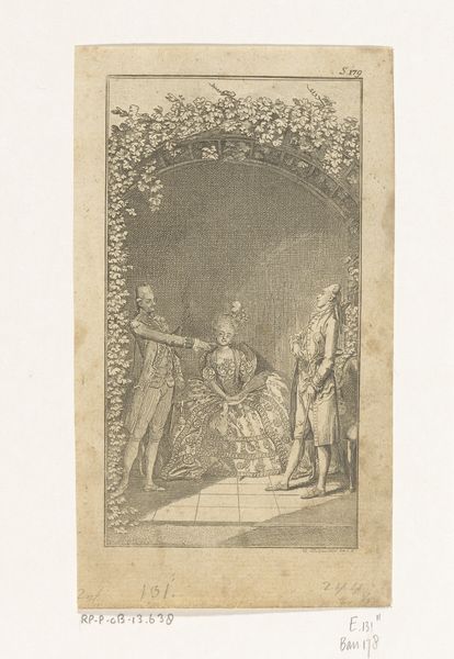 Curator: We're standing before Daniel Nikolaus Chodowiecki's etching and engraving from 1784, titled "Lovelace Does as if He Is Ill," found here in the Rijksmuseum. Editor: The scene strikes me as a bit farcical. There's an overdramatic, almost staged quality to the feigned illness and the attending figures seem equally theatrical. Curator: Indeed. Chodowiecki was known for his narrative scenes that captured social customs and moral lessons of the time. The print likely illustrates a scene from Samuel Richardson's novel "Clarissa," wherein Lovelace, the manipulative protagonist, feigns illness. The elaborate bed hangings, the attire, the arrangement of figures– all speak to class and power. Editor: Ah, placing it within the context of "Clarissa" reframes it. Now it's a commentary on manipulative masculinity and performative vulnerability as a power tactic. We often see male authority asserted through displays of physical strength, but Lovelace's alleged illness in this print creates an inversion. His ‘weakness’ ironically commands the attention of all present and centers him within this feminine sphere. Curator: Exactly. And note the reactions of the women attending to him. Some look concerned, others appear skeptical or even gossipy. The work shows us not only Lovelace’s deceit, but also the complicated social dynamics within a wealthy household of that era. Think about the way it reflects ideas of health, domestic roles, and even gendered performance, specifically how illness could be deployed to manipulate those dynamics. Editor: It definitely pushes against sentimental tropes, revealing how even intimate gestures, such as those around a sickbed, could be corrupted and exploited as tools to deceive and subjugate. Viewing it today, I think it's vital that we see how some behaviors, particularly among powerful men, haven't fundamentally changed much in 200 years. It offers insight into recognizing familiar behaviors and patterns in present-day life. Curator: Well said. It makes one consider the persistent power dynamics that are still being negotiated in society. I think Chodowiecki was keen to subtly draw attention to such themes of performativity. Editor: For me, viewing this has made me think a lot about how certain tropes can be repurposed across historical periods as the tactics of powerful individuals. Thank you.