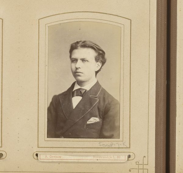 This is Georg Friedrich Munck’s portrait of a young man. The tones of the image are muted and sepia, giving a sense of faded grandeur. The subject is positioned centrally, drawing our immediate focus. Munck's use of soft focus and delicate tonal gradations gives depth to the subject’s features. Observe the gentle modelling of the face, achieved through subtle variations in light and shadow. The formal composition invites us to consider the cultural context. The carefully arranged attire and pose speak of an era concerned with appearances, and the desire to project an image of respectability and status. The photograph can be viewed as a cultural signifier, reflecting the values of bourgeois society at the time. This portrait is not merely a record of a person's likeness. It's also a structured arrangement of tones and shapes, created to evoke contemplation and a sense of human presence across time. As such, the artwork challenges fixed notions of identity.