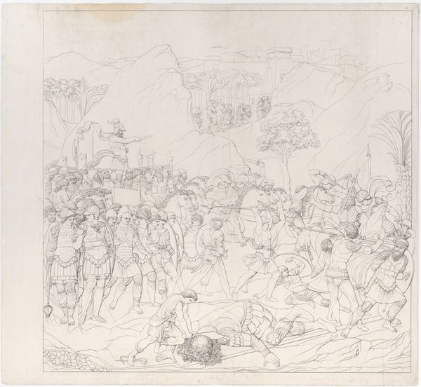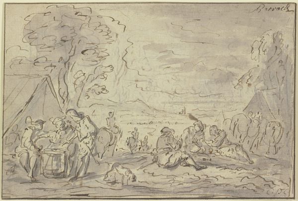Gerard Melder created this drawing, 'Triumph of Bacchus and Ariadne', using pen in brown ink. Observe how the lines, though delicate, orchestrate a scene of Dionysian revelry with dynamic force. The composition, a frieze-like arrangement, guides our eyes across the procession of figures, each rendered with subtle variations in form and posture. The artist's use of space is particularly compelling, where the figures create a sense of depth and movement. Melder uses line to convey an overall theme of liberation and ecstasy, a concept deeply rooted in the artistic and philosophical inquiries of the time. The drawing challenges fixed notions of form and restraint, it taps into a broader cultural interest in the exploration of human experience. The network of lines and forms embodies a visual discourse that extends beyond mere representation, inviting us to contemplate the nature of art itself.