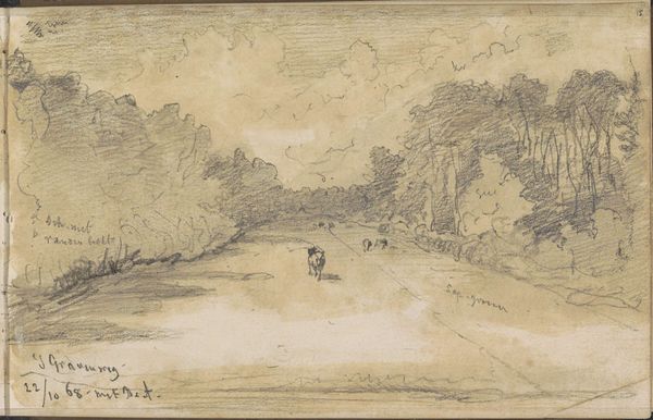 Johannes Tavenraat made this quick sketch with pen in 1865, and it is a study of a figure on a path towards the station of Capelle aan den IJssel. The work is made from humble materials: pen, ink, and paper. It’s a simple combination, but one that carries a lot of cultural weight, since sketching was essential to the academic training of artists in the 19th century. Tavenraat shows off his control of line and tone. You can see the layering, where he adds depth and volume to the depiction of the person on the road. The thinness of the lines show us the paper's texture, and you can see the mark-making that indicates foliage. The speed and economy of the drawing speaks to the social conditions of its making. The artist needed to be efficient in recording the world around him, and the drawing may have served as the basis for a more elaborate work. This drawing is significant for how it demonstrates that everyday materials and processes can result in skillful artworks, challenging distinctions between fine art and craft.