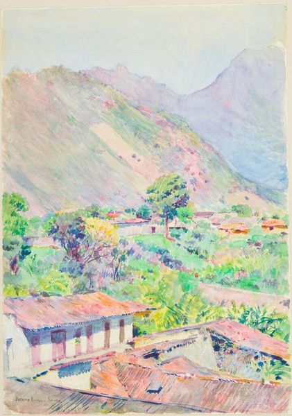 Editor: Here we have Denman Waldo Ross's "Cloud on Mountain Top, Orizaba, Mexico," a watercolor piece. I'm immediately drawn to the textures—the rough paper seems integral to the mountain's imposing presence. What can you tell me about the choices of materials here? Curator: The use of watercolor invites a focus on process. Consider the availability and affordability of watercolor paints versus oils in the early 20th century. Was Ross responding to limitations or making a conscious choice to explore the materiality of a readily accessible medium? What implications arise from that choice? Editor: So, the accessibility of the materials speaks to a broader cultural or economic context, potentially affecting the types of subjects artists could depict? Curator: Precisely. It prompts us to look beyond the surface beauty of the landscape and ask what the very means of production reveal about the artist's position and the scene portrayed. Editor: I hadn't thought of it that way; it makes me want to research the socio-economic conditions influencing artistic choices of that period. Curator: Indeed, art's materiality often has a lot to say about its making, distribution, and consumption.