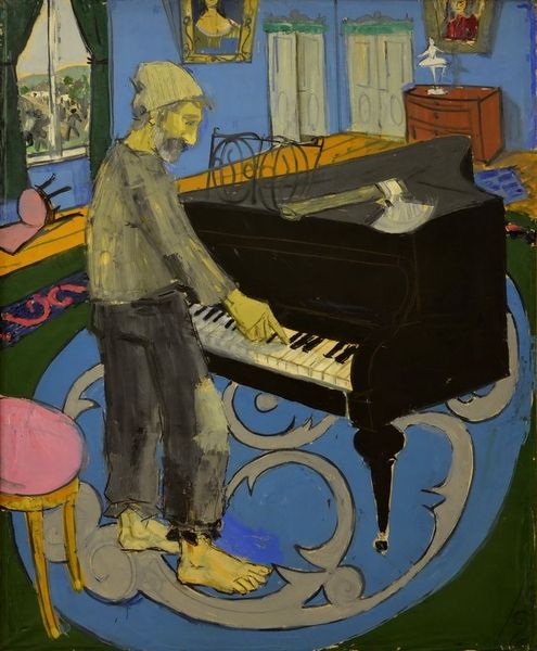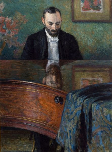 Gustave Caillebotte made this painting of a young man at a piano with oil on canvas. This work resonates with the cultural norms of the French bourgeois in the late 19th century. The figure's engagement with the piano, juxtaposed with the domestic interior, highlights the era's emphasis on refined leisure and artistic cultivation as markers of social standing. Painted during a period of rapid social and economic change in France, Caillebotte subtly comments on the values and aspirations of his milieu. The piano, a prominent status symbol, suggests the cultural capital afforded to those with the means to engage in artistic pursuits. To truly understand the painting's cultural significance, one might research the history of musical education and its relationship to social class in 19th-century France. By examining archival materials and contemporary writings, we can gain insights into the complex interplay between art, society, and individual identity. Art history reminds us that the meaning of art is always contingent on its social and institutional context.