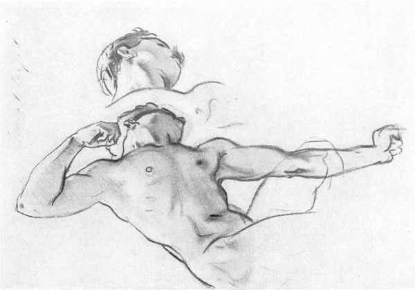John Singer Sargent made this energetic drawing with what looks like charcoal, showing two male nudes wrestling. There’s an immediacy to the mark-making, like he’s trying to capture a fleeting moment or a burst of energy. The texture is fascinating, with smudged lines and areas of intense darkness creating a real sense of depth and movement. Look at how the lines blur and blend around the figures' bodies – it’s almost like they’re vibrating with tension. The way the light catches on their muscles is so sensual. It’s amazing how he suggests so much with so little. Sargent's bravura technique always gets me. Think of Rodin’s drawings, too. Both artists leave something unresolved, allowing us to participate in the act of seeing. It's all about possibilities, not fixed conclusions.