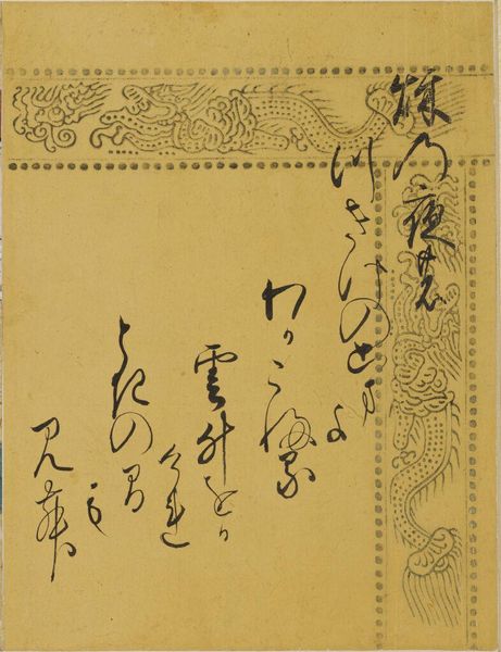 Editor: This is a page from "Red Plum Blossoms," an excerpt from The Tale of Genji by SanjÅnishi Sanetaka. The delicate calligraphy is striking, but I’m curious about its place in the broader narrative. What does it tell us about the story's themes or the artist's intentions? Curator: This calligraphic excerpt, set against the backdrop of "Red Plum Blossoms," operates within the complex societal framework depicted in The Tale of Genji. Consider the Heian period’s emphasis on aesthetics and courtly love. How might this visual representation of the text reflect or subvert those expectations? Editor: That's fascinating. So the calligraphy isn’t just about pretty writing, but about reflecting social norms? Curator: Precisely. Sanetaka's choices invite us to consider gender roles, power dynamics, and the very act of storytelling. What does it mean to extract and display this particular excerpt, and how does it alter our understanding of the whole? Editor: I never considered that! It makes me think about how art can challenge our perceptions of history. Curator: Absolutely. It's a conversation between past and present, constantly re-evaluating what we think we know.