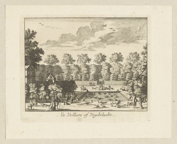 Editor: So, here we have "Gezicht op Uitmeerse Sluis bij Weesp," or "View of Uitmeerse Sluice near Weesp," created around 1790 by Daniël Stopendaal. It's an engraving, so it’s all lines and hatching…It’s quite detailed, almost feels like looking at a meticulously rendered memory. What feelings does it evoke for you? Curator: Ah, yes, a landscape so precise, so clearly defined! Immediately, I'm transported. Can you see how the artist captures a delicate balance between human activity and nature's placid indifference? There's this incredible quietude, a stillness, despite all the little figures dotted about their business. Editor: It's interesting you point that out, I was mostly struck by the flatness of the scene and sky, the overall composure of the composition, I suppose… What exactly were they up to? Curator: Consider the historical moment. This is the late 18th century, a time of Enlightenment ideals blending with emerging Romantic sensibilities. The Dutch landscape, meticulously managed, yet hinting at something wilder beyond. Notice how the strong fortifications serve not as barriers, but become part of an integrated view with nature. What purpose did those canals really have? Did this affect the style? Editor: Well, this might've served to control flooding, or maybe as part of a transportation network. Perhaps practical function made it popular for art? And in style...I can sense a subdued sense of Romanticism? Curator: Precisely! There’s that wistful melancholy inherent to Romanticism peeking through despite the overt "Dutch Golden Age" landscape. The print becomes this layered statement – utility coexisting with the picturesque. Editor: I hadn’t considered the duality of the two styles combined together before. It makes you see the familiar…differently. Curator: That’s exactly it! The lens through which we view changes our understanding. The practical now whispers a story. Perhaps that is the enchantment of old places captured.