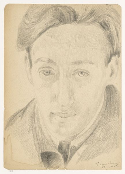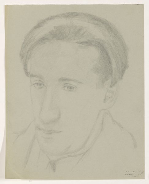 This self-portrait, rendered in graphite on paper by Cor van Teeseling on February 10th, presents a study in subtle tonal gradations and delicate lines. The artist captures his likeness with an almost ethereal softness, the gentle shading creating a pensive, melancholic mood. The composition is deceptively simple. Teeseling focuses primarily on his face, framed by soft, flowing hair and the suggestion of a scarf. The formal arrangement draws the viewer's eye directly to the subtle play of light and shadow that defines his features. The slight asymmetry in his expression hints at an inner complexity, defying a singular interpretation. Consider the semiotic implications of such understated rendering during a time of war; the lack of bombastic statements perhaps speaks volumes about the quiet dignity of the individual amidst chaos. The drawing's power resides not in overt expression, but in its quiet, contemplative nature, inviting ongoing reflection on identity and existence.
