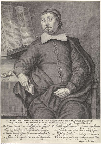 Cornelis Visscher created this engraving of Joost van den Vondel, the celebrated Dutch poet and playwright, in the mid-17th century. Vondel, a towering figure in Dutch literature, lived during a period of immense social and political change, including the rise of the Dutch Republic and its Golden Age. Visscher's portrait presents Vondel not just as a writer, but as a figure deeply connected to the cultural and intellectual shifts of his time. His gaze and posture reflect the confidence and intellect associated with men of letters during the Dutch Golden Age. Vondel himself was a convert to Catholicism. The print includes Latin text, celebrating Vondel's genius and comparing him to classical poets like Virgil and Horace, which underscores the cultural aspirations of the Dutch Republic to align itself with the traditions of classical antiquity. This image is a powerful statement about cultural identity, intellectual achievement, and the complex interplay between personal conviction and public persona.