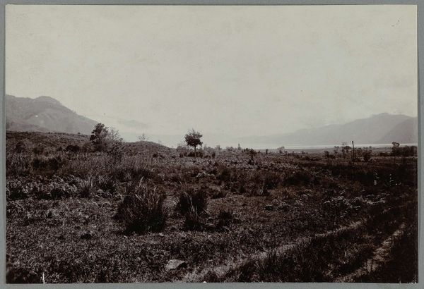 This anonymous photograph, titled "Uitgegraven versteningen langs de weg" captures a roadside scene, almost entirely in muted greys and browns, a landscape of dug-up stones. The monochrome palette feels elemental, like peering into a memory or a dream, where colors have been gently washed away by time. The texture of the earth is palpable, the rough surfaces of the stone heaps contrasting with the smoother path, the way the light falls on the mounds of earth makes me think about the physical act of excavation. The composition is divided by a road, and in the distance, figures stand between the two mounds, giving the landscape an added human dimension. I'm reminded of Agnes Martin's subtle grids and muted tones. While Martin worked with abstraction, both she and this photographer share an interest in capturing the essence of a landscape, the way atmosphere and light can transform the ordinary into something quietly profound. Ultimately, this photograph feels like an invitation to reflect on the hidden histories contained within the earth, the stories buried beneath our feet.