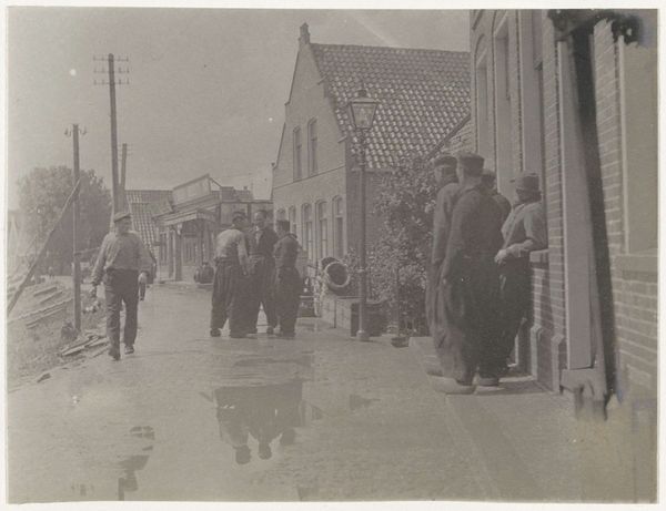 This vintage photograph, “Mannen in Volendamse klederdracht rondom een kar op straat”, by G. Hidderley, shows men in traditional Dutch attire surrounding a cart on a street. The sepia tones are dreamy, like an old memory, and the whole picture has a soft, almost hazy quality. The composition is structured, but what grabs me is the details, the way the light catches the wooden shoes, or the stoic expressions on the men's faces. I imagine Hidderley carefully considered the scene, each element contributing to the overall narrative. The photograph feels like a tableau vivant, capturing a moment of everyday life elevated by the formality of the attire and the careful arrangement of figures. It reminds me a little of August Sander, who sought to document the German people with an objective eye, but here there's a warmth, a sense of place and community that transcends mere documentation. This is how art creates a conversation across time.