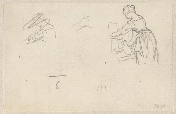 Matthijs Maris made this sketch of wooden stools with graphite on paper. The quick lines and simple composition might lead you to think it’s just a casual study. But look closer, and you'll see that Maris has used the immediacy of drawing to capture a specific quality of these objects. The stools are rendered with close attention to their material presence. You can sense the weight of the wood, the way the joints are assembled, and the slightly awkward stance that gives each stool its character. They seem to have been crafted by hand, likely by someone with limited resources. Maris is interested in these vernacular forms, these objects of everyday use, the kind of thing that would be found in a humble workshop. By giving these utilitarian objects such careful attention, Maris elevates them, suggesting that even the simplest things can be worthy of aesthetic consideration. It blurs the boundary between fine art and craft, urging us to appreciate the artistry inherent in everyday life.