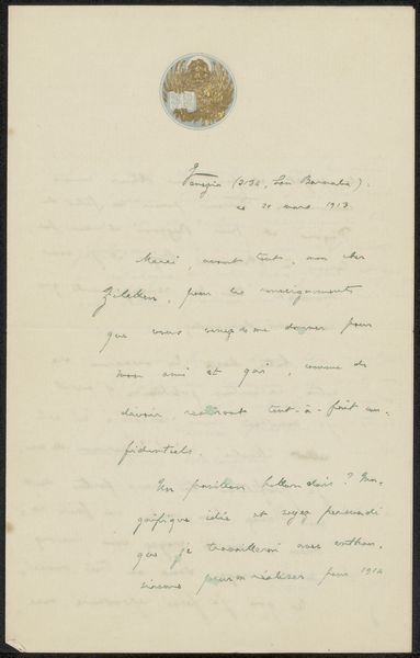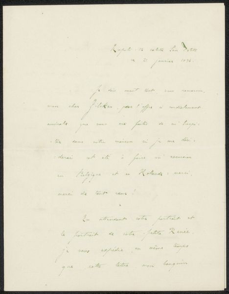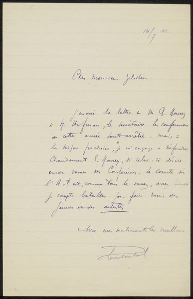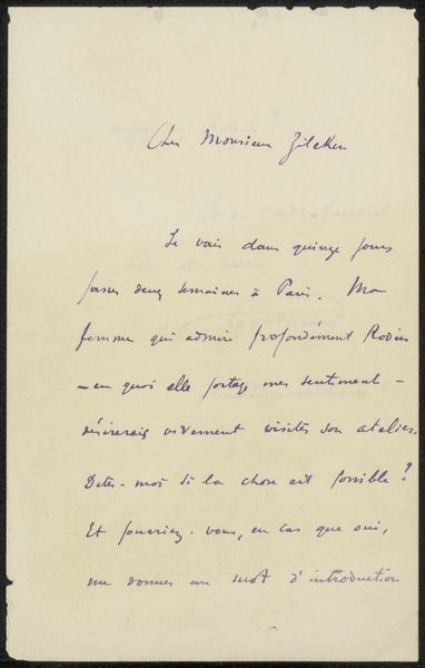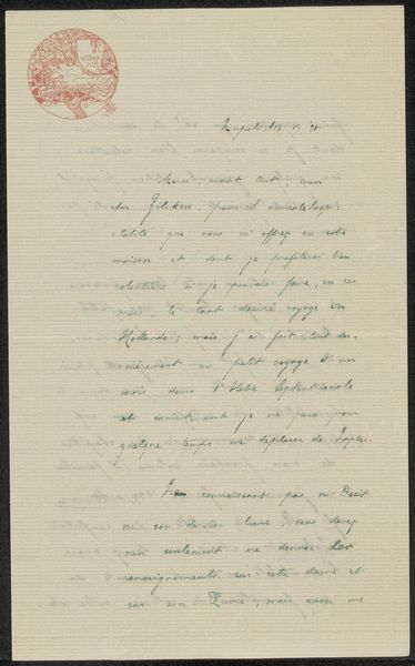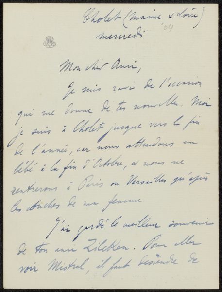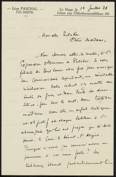 Léon Paschal penned this letter to Philip Zilcken in blue ink on paper. The script sprawls across the page, creating a field of textual forms against the creamy backdrop. Observe how the artist employs line and space. The lines of text aren't strictly horizontal; instead, they undulate, mirroring the natural variations in handwriting. This approach infuses the piece with an organic quality, defying the rigid structure typically associated with written communication. The negative space surrounding the text is as significant as the writing itself, providing a visual pause, a kind of breath between thoughts. It prompts questions about the very nature of communication and representation. Is language merely a tool for conveying information, or can it also function as a medium for artistic expression, blurring the boundaries between the written word and visual art? This invites a reconsideration of how we understand textual forms, not just as carriers of meaning, but as aesthetic entities that shape our perception and understanding.