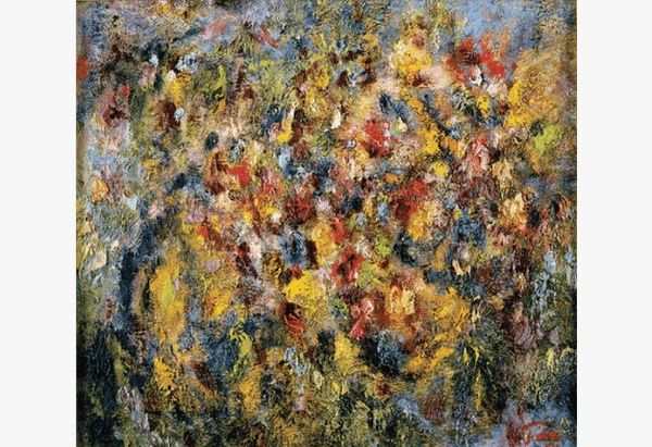 Editor: Here we have Lovis Corinth’s “Autumn Flowers,” created in 1923 using oil paint. I’m struck by its energetic brushstrokes – they seem to capture the very essence of the flowers’ vibrancy, even as they hint at decay. How do you interpret this work? Curator: I see the transience of life vividly portrayed. Consider the historical context – 1923, just after the horrors of the First World War. Flowers, traditionally symbols of beauty and life, here carry a heavier weight. The almost violent application of paint, typical of German Expressionism, underscores a deep emotional response to a world scarred by conflict. Can you feel the urgency in his brushstrokes? The red perhaps suggesting passion and vitality, yet tinged with a sense of urgency and the inevitability of fading beauty? Editor: I can definitely see the tension you describe. The red flowers particularly seem to push forward, almost demanding attention. It's not a peaceful still life. Curator: Exactly. Still life paintings often act as a kind of "memento mori," reminding us of mortality. The Expressionists heightened this symbolic potential, imbuing familiar images with raw, often unsettling, emotion. Corinth’s deliberate distortion pushes the genre’s symbolic capacity, encouraging viewers to meditate on themes of loss and impermanence, amplified by personal trauma. Do you see other symbolic color choices? Editor: I notice the darker, almost muddied colors at the base. They make the vibrant flowers seem even more fragile by comparison. It’s not just a pretty picture of flowers, but a commentary on life’s fleeting nature. Curator: Precisely. It becomes a powerful emblem of human resilience in the face of life's challenges. An embodiment of emotional perseverance during times of societal grief. Editor: That's a really insightful way to look at it. Thanks for pointing out those details; it has shifted my perspective entirely. Curator: My pleasure. Always remember, visual culture transmits enduring collective trauma via symbols for future generations.