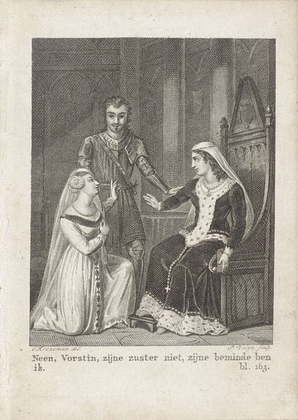 Editor: This is "Phryne Tempting Xenocrates," by Simon François Ravenet the Elder. The contrast between light and shadow is so striking! What do you see in this print? Curator: The work excels in its manipulation of chiaroscuro, creating a dramatic tension that underscores the psychological interplay. Note how Phryne is bathed in light, while Xenocrates remains partially obscured. Editor: That's interesting. So it's not just about who they are, but how the light falls on them? Curator: Precisely. The composition guides our eye, emphasizing Phryne's persuasive gesture. The materiality of the print itself, its lines and textures, contribute to the overall dynamic. Editor: I see what you mean. Thinking about it formally really changes how I understand the artwork. Curator: Indeed.