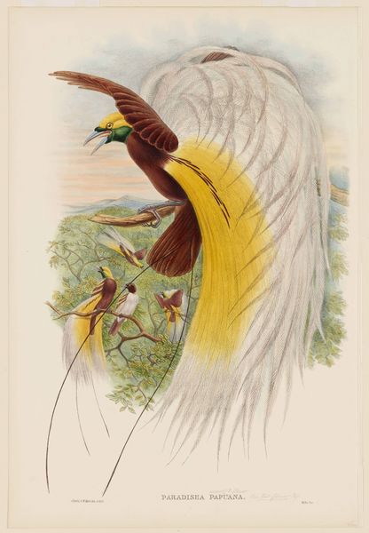 John Gould made this lithograph plate of the birds of paradise. The image reflects Britain's expansive reach and its place in the natural order of things during the 19th century. These birds, native to New Guinea and surrounding islands, became potent symbols of the exotic "other" for Europeans. Gould's work, while seemingly scientific, played a role in shaping public perception and desire for the natural world, especially in colonial contexts. Consider the politics of representing the natural world and how it affects our understanding of the social, economic, and cultural dimensions of empire. It’s important to look at the scientific literature of the period, travelogues, and colonial records to understand the social conditions that shaped artistic production during this time. In doing so, we can better understand the complex relationship between art, science, and society.